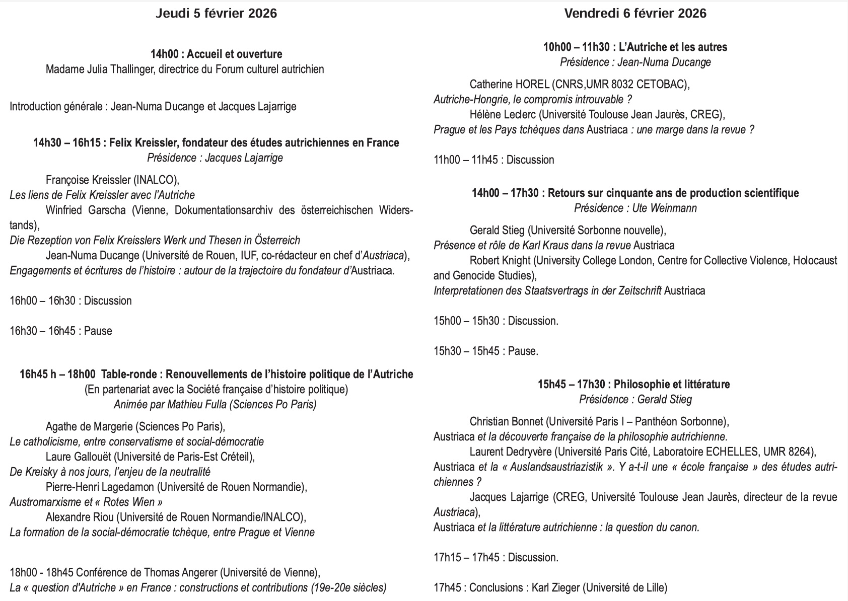Ce colloque est l'occasion de revenir sur un demi-siècle d'échanges intellectuels et scientifiques entre la France et l'Autriche. Des collègues français et autrichiens de diverses générations ayant participé à l'histoire de la revue seront présents. Une place importante sera faire aussi aux doctorants et jeunes chercheurs. Colloque co-organisé par Jacques Lajarrige (Université de Toulouse Jean Jaurès) et Jean-Numa Ducange (Université de Rouen Normandie)